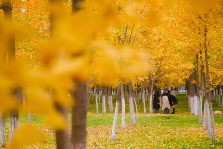 秋天的银杏 冬天的雪景